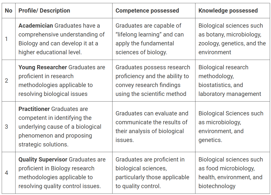 The study program describes the roles that graduates of a study program can play in society, as presented in the following table: