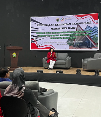 The Introduction to Campus Life for New Students (PKKMB) was a special opportunity that received a warm welcome from the Head of the Biology Department, FMIPA, Hasanuddin University, Mrs. Dr. Magdalena Litaay, M.Sc.