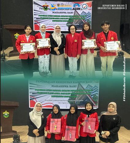 The Department of Biology, Faculty of Mathematics and Natural Sciences, Hasanuddin University, proudly welcomes the arrival of new students of the Biology Undergraduate Study Program for the 2025/2026 Academic Year through the Introduction to Campus Life for New Students (PKKMB) activity at the study program level.