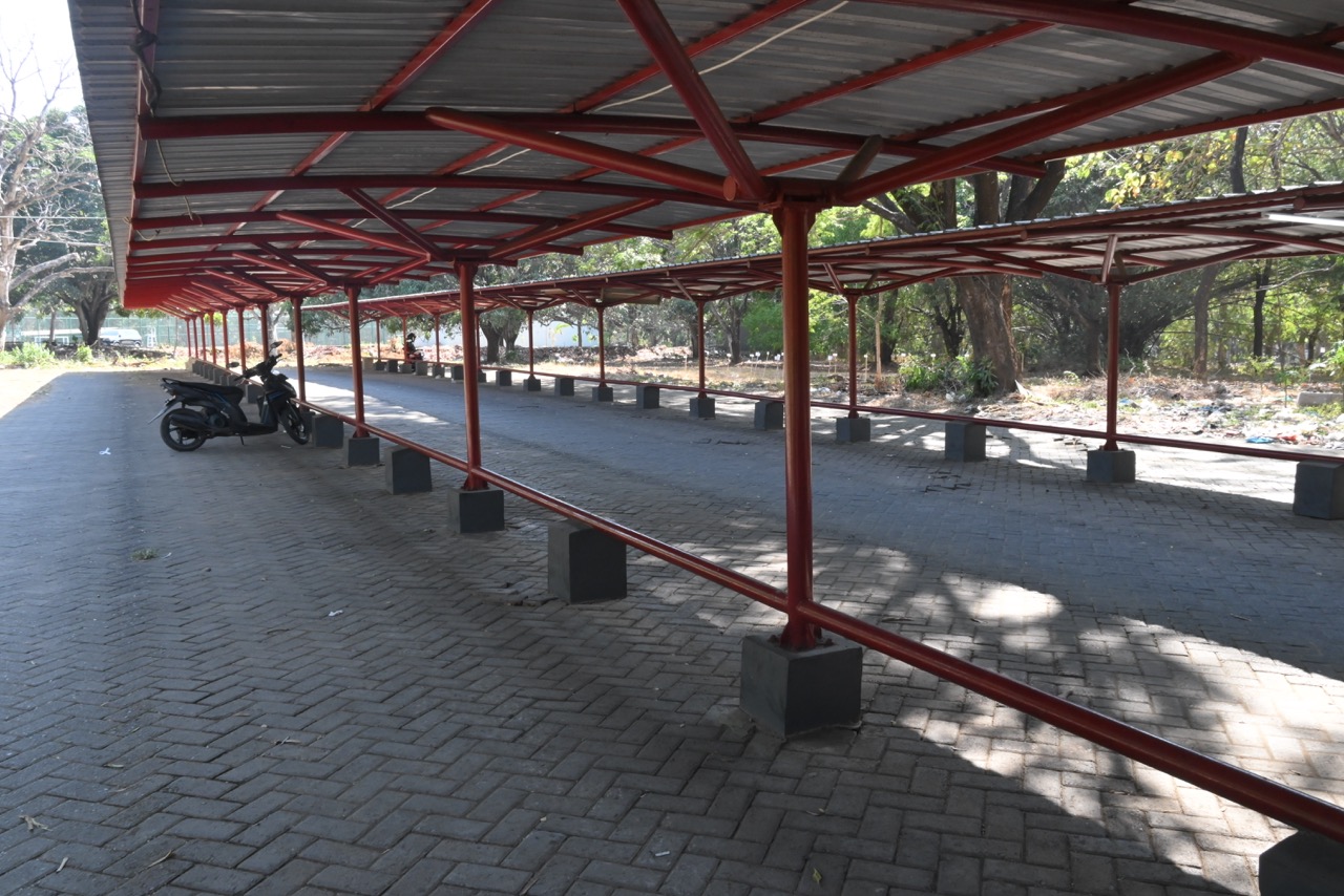 Parking Area: A spacious parking area, with separate sections for cars and motorcycles/bicycles.