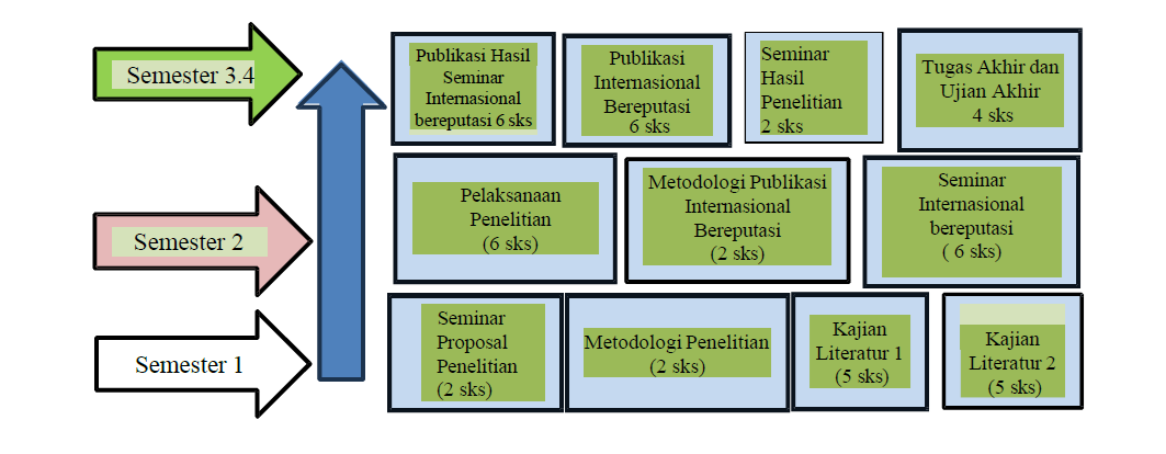 Peta Kurikulum jalur kuliah dan jalur riset, disajikan dalam bentuk diagram alir