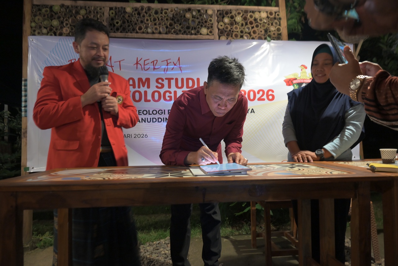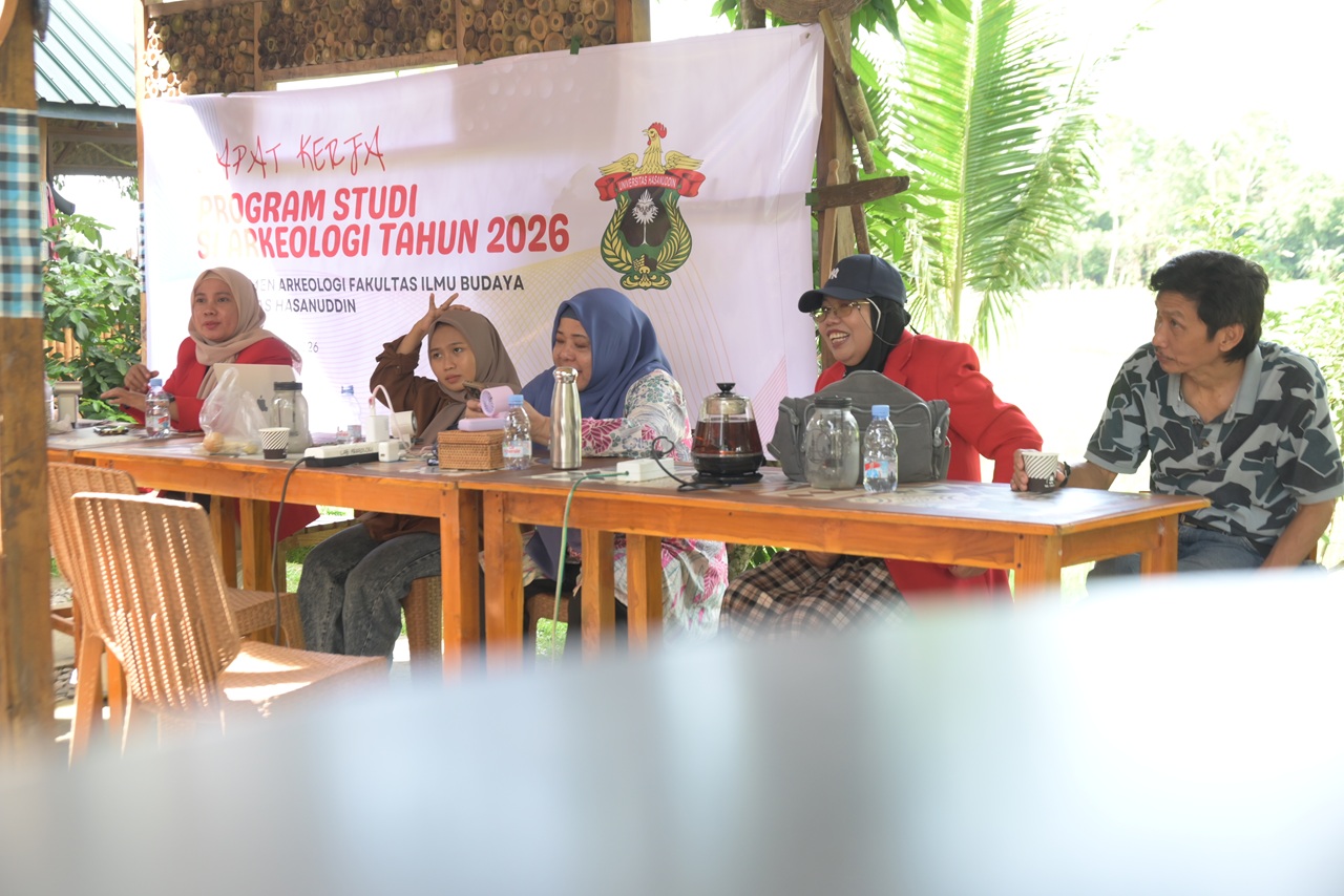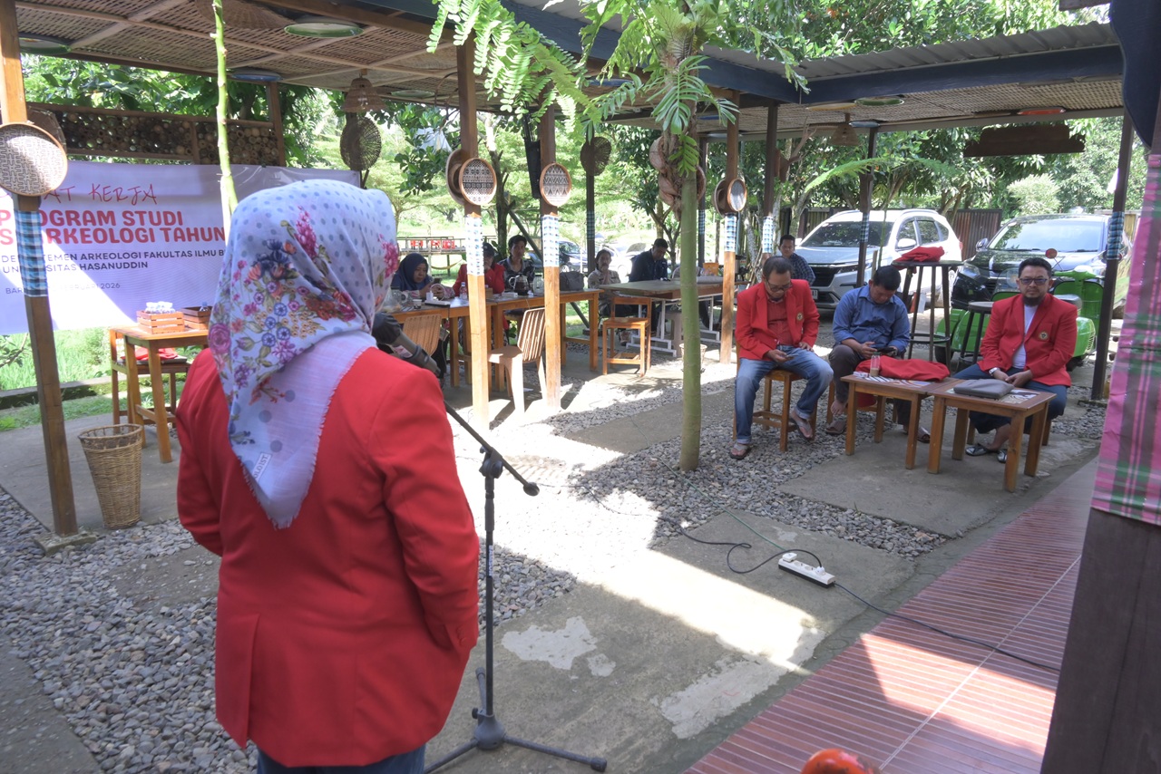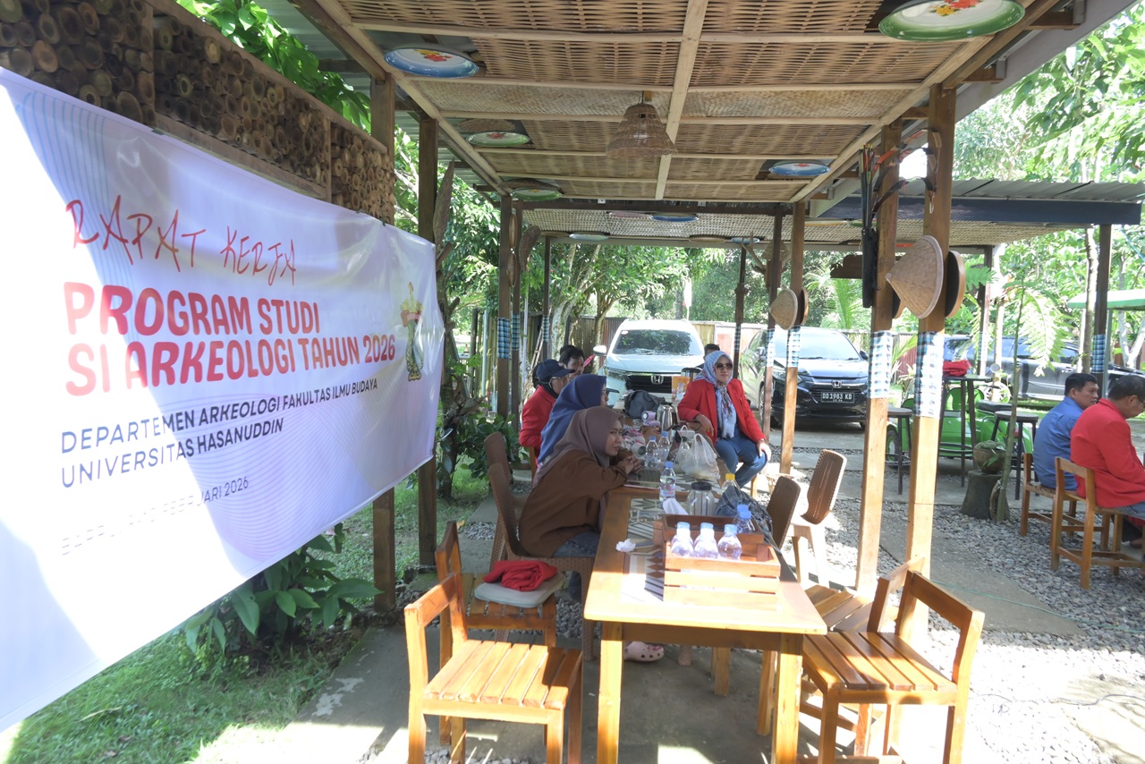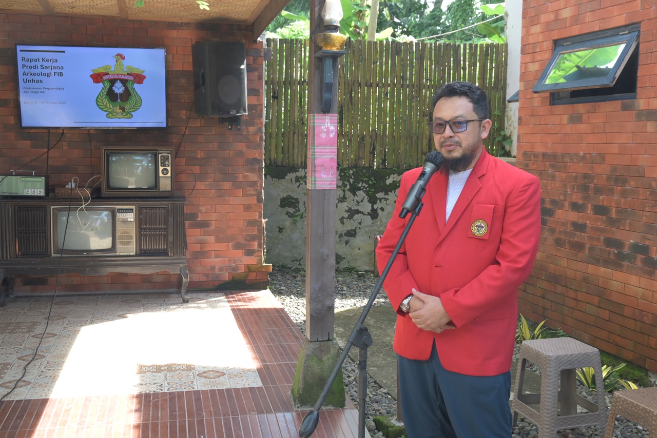 Makassar, 9 February 2026 – The Archaeology Undergraduate Programme of the Faculty of Cultural Sciences, Hasanuddin University, held its 2026 Work Meeting (Raker), which was attended by all lecturers and educational staff. The meeting was officially opened by the Vice Dean II, representing the Dean of the Faculty of Cultural Sciences, Prof. Dr. Andi Muhammad Akhmar, S.S., M.Hum.