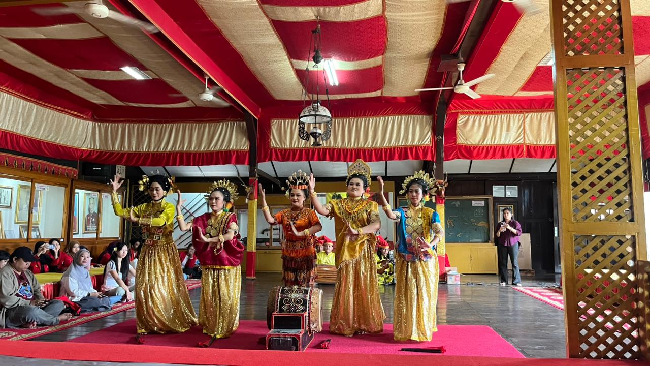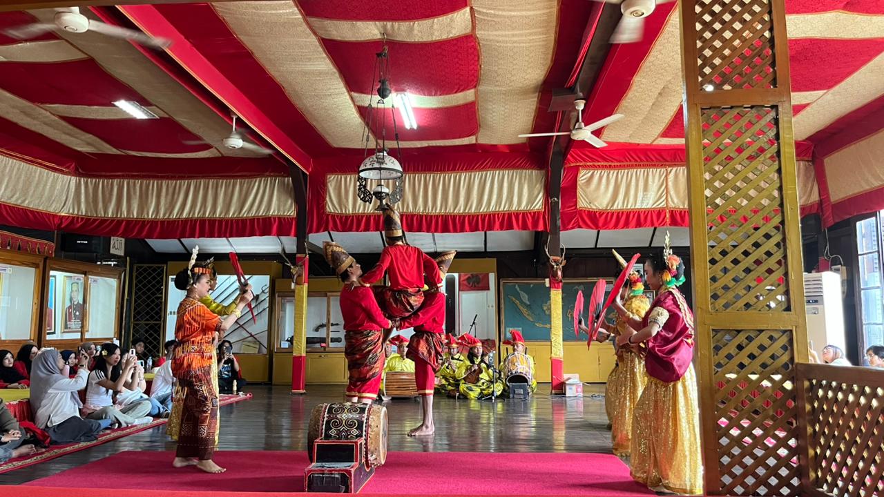 The group then continued to Balla Lompoa, the museum and former palace of the Gowa Kingdom located in Gowa Regency. Upon arrival, they were warmly welcomed with the Four Ethnic Dance—Makassar, Bugis, Mandar, and Toraja—performed in vibrant costumes representing the cultural diversity of South Sulawesi.