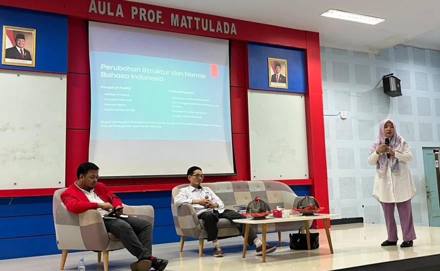 Guru Besar Sastra Indonesia Fakultas Ilmu Budaya (FIB) Unhas, Prof Munira Hasjim menyoroti fenomena perubahan bahasa Indonesia di kalangan remaja sebagai gejala linguistik yang kompleks dan menarik untuk dikaji melalui pendekatan Humaniora Digital.